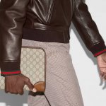 The new, premium Gg Emblem collection of men's travel pieces embodies the brand's timeless elegance and exquisite craftsmanship. Crafted from a new beige and dark brown coated fabric with the Gg monogram, this business bag features three internal card compartments and a detachable side handle.