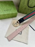 This Double G belt is available in both men's and women's styles. This red and green elastic webbing belt with Double G buckle hardware is a nod to the 70s.