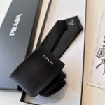 This is a high-end custom-made Prada classic tie with the logo, featuring a dou
