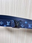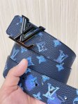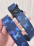 This reversible belt captures a painter's creative moment with a watercolor effect, making the Monogram pattern emerge from a watercolor background, revealing a clean, simple side when flipped. A matte buckle adds a touch of brand sophistication. Monogram canvas, calfskin, buckle, supports NFC chip scanning.