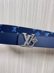 This reversible belt captures a painter's creative moment with a watercolor effect, making the Monogram pattern emerge from a watercolor background, revealing a clean, simple side when flipped. A matte buckle adds a touch of brand sophistication. Monogram canvas, calfskin, buckle, supports NFC chip scanning.