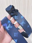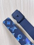 This reversible belt captures a painter's creative moment with a watercolor effect, making the Monogram pattern emerge from a watercolor background, revealing a clean, simple side when flipped. A matte buckle adds a touch of brand sophistication. Monogram canvas, calfskin, buckle, supports NFC chip scanning.