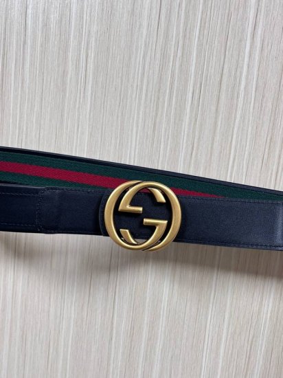 This reversible belt features red and green webbing and black cowhide leather, paired with a detachable interlocking double G buckle, adding a new piece to the Fall/Winter 2026 collection. 4.0 Wide Embossed Buckle DDD