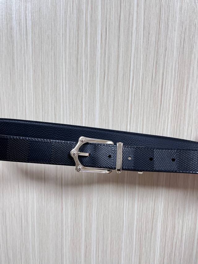 This season's new Frog reversible belt combines modern elements with elegant details, achieving two styles with Damier leather and supple leather. The distressed buckle pays homage to the brand's trunk-making heritage. DDD 3.0 wide reversible black. DDD