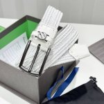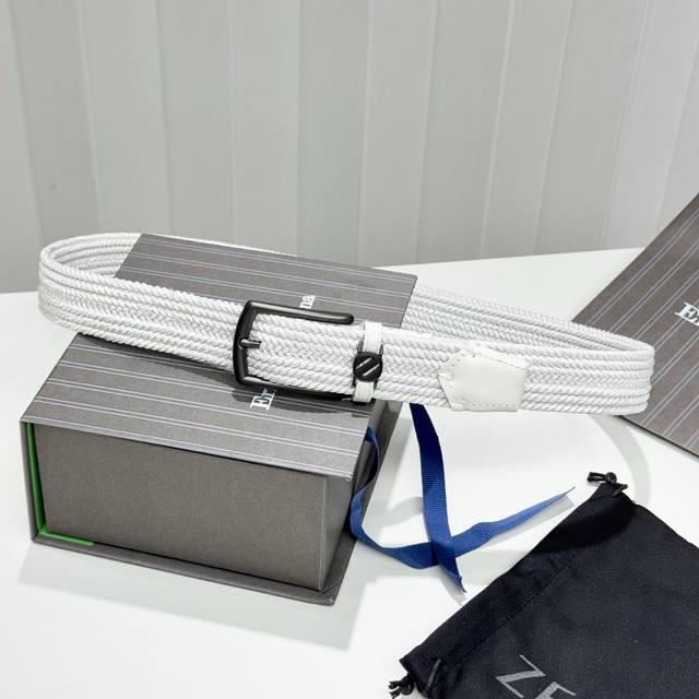 This white woven silk belt from Zegna features modern materials and stylish details, giving a classic design a fresh look. The signature Trile Stitch buckle is finished in glossy deep black, and the buckle is embellished with the Zegna initials.