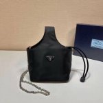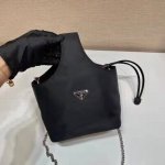 The bag is made of imported nylon fabric + classic triangle logo, the inner pocket has a drawstring bag opening, and is equipped with a detachable white chain, which is easy to carry and very spacious