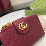 Top-of-the-line Gg Marmont wallet. Crafted from timeless, wine-colored leather, this Gg Marmont wallet is a classic addition to the Aria collection. The Double G design, inspired by 1970s belt buckles, is reimagined in tonal resin on this wallet. The classic design is combined with a monochromatic color scheme for a modern and stylish look. Model: 739498. Dimensions: 13 x 8.5 x 2 cm. Color: Wine-colored genuine leather.