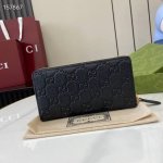 Top-of-the-line new Gg Emblem series ultra-soft lychee embossed full leather wallet. Model: 821803.