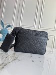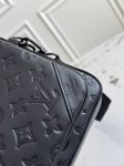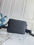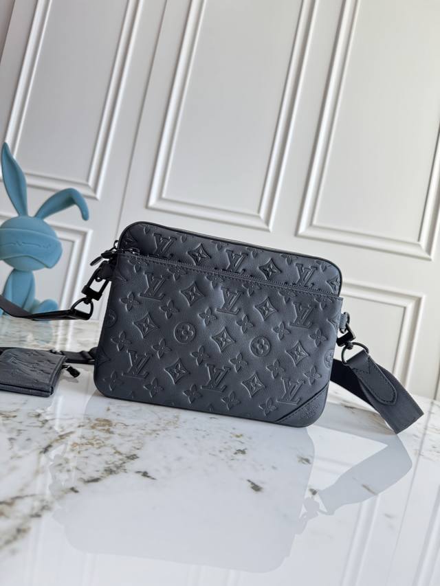 Top-quality genuine leather M46602 black 163C01 chip exclusive photos M46604 blue M46603 gray This Trio messenger bag is crafted from Monogram embossed cowhide leather. The zippered front pocket and small coin purse on the shoulder strap are both removable, complementing the main compartment's functional design. The removable and adjustable jacquard fabric shoulder strap, emblazoned with the brand's logo, allows for comfortable shoulder and crossbody carry. Dimensions: 25