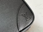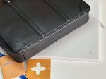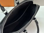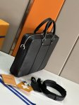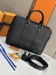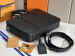 Top-quality original M30925] This Voyage Small Briefcase is crafted from Taga Noir cowhide leather, embossed with a fine grain after smoothing and polishing. The padded interior can accommodate a 13-inch laptop, while dual rear patch pockets add functional details. It features a top handle and a removable, adjustable shoulder strap. Details: 36.5 x 27.5 x 6 cm (Length x Height x Width L