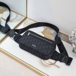 Upgraded Version 9 Quality D Home This waist bag is functional and modern. Crafted from beige and black Oblique print fabric, it's accented with black grained cowhide leather. It features a spacious main compartment with a two-way zipper closure. The nylon jacquard shoulder strap allows you to wear the bag around your waist. The buckle is embellished with the brand's logo, highlighting the brand's signature. Model 1080, Dimensions: 24 x 14 x 5 cm.