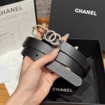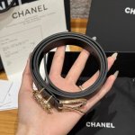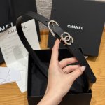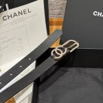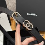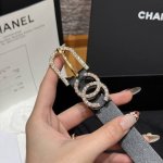 This double-faced cowhide belt features a crystal buckle, embodying elegance and class. The U-shaped buckle features the Swarovski Double C logo. Although a spring/summer runway style, it remains beautiful even in winter. The sparkling diamond embellishment makes it versatile, whether paired with jeans or a skirt.