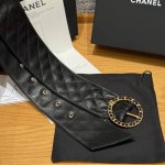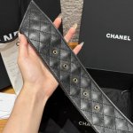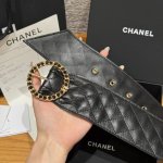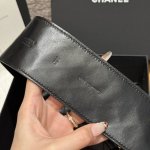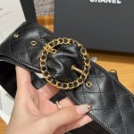 In the Spring/Summer 2025 Haute Couture Collection, accessories cleverly play on the brand's signature style elements. This black leather belt is adorned with the brand's classic chain-shaped buckle, which contrasts sharply with the smooth pastel-colored silhouette.