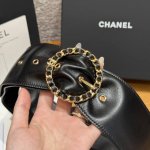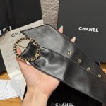 In the Spring/Summer 2025 Haute Couture Collection, accessories cleverly play on the brand's signature style elements. This black leather belt is adorned with the brand's classic chain-shaped buckle, which contrasts sharply with the smooth pastel-colored silhouette.