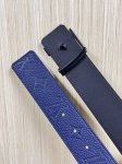 New arrival this season! 4.0 calfskin leather with embossed blue lychee pattern on one side and plain calfskin on the other. High-quality buckle, actual product photo. 4.0 wide blue leather-trimmed buckle. DDD