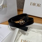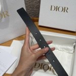 New Dior belt. This belt is crafted from smooth black cowhide leather and features a metal-coated brass buckle. Its classic design subtly accentuates the waistline, exuding elegance. It can be paired with jeans or a dress. Width: 25mm.