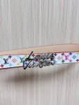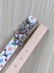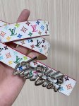 New for the season, this belt is crafted from luxurious calfskin and Monogram canvas, allowing for effortless switching between two styles. The Louis Vuitton handwritten logo is transformed into a wide metal buckle, drawing attention to the center and adding an elegant touch to both casual and formal looks. Made of 3.0mm wide white calfskin.