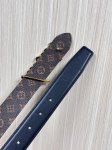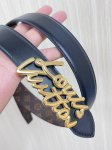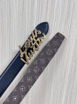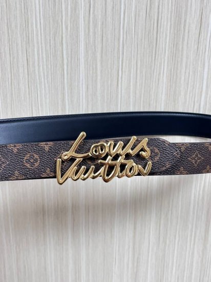 New for the season, this belt is crafted from luxurious calfskin and Monogram canvas, allowing for easy switching between two styles. The Louis Vuitton handwritten logo is transformed into a wide metal buckle, drawing attention to the center and adding an elegant touch to both casual and formal looks. It's 3.0mm wide, made of black calfskin, and features a pointed, square design.