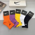 Box of 5 pairs of Nike mid-calf socks (with packaging) - New style, combed cotton, high-quality, antibacterial, odor-resistant, sweat-wicking, and breathable.