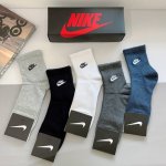 Packaged with 5 pairs per box. Ddd New Nike High-Version Embroidered Thick Mid-Calf Short Socks, Super Soft Fabric, Same Style as Department Stores, Men's Socks, Antibacterial, Odor-Resistant, Sweat-Absorbent, Breathable, Versatile Style! DDD
