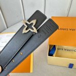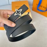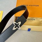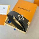 L0Uis Vuitt0N This season's new women's belt, 30mm wide, made from classic double-sided calfskin embossed with new, low-key square-shaped hardware. Reversible and perfect for the calm and understated goddess.