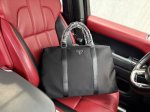 High-end, latest Prada briefcase, Prada handbag, crossbody bag with logo, adjustable shoulder strap, Saffiano leather messenger bag, men's black nylon and Saffiano leather messenger bag. Made of nylon, metal hardware and titanium zipper, Prada logo, fabric lining, two side buckles, triangular enamel logo on the front. This modern and stylish shoulder bag features a detachable pouch charm and spacious interior compartments, highlighting its functionality. It also features a smooth zipper, a dedicated interior, and high-definition hardware logo. Dimensions: 47 x 31 x 17 cm
