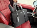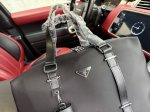 High-end, latest Prada shoulder bag. Prada messenger bag with logo and adjustable shoulder strap. Saffiano leather messenger bag for men. Black nylon and saffiano leather messenger bag. Made of nylon, metal hardware and titanium zipper. Prada logo, fabric lining. Two side buckles. Triangular enamel logo on the front. This modern and stylish shoulder bag features a detachable pouch charm and spacious interior compartments, highlighting its functionality. Smooth zipper, dedicated interior, and high-definition hardware logo. Dimensions: 41 x 30 x 13 cm.