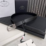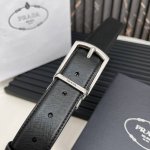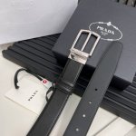 Prada official website synchronized, Prada Saffiano leather double-sided new pin buckle, belt width 3.4 cm with buckle and engraved nameplate DDD
