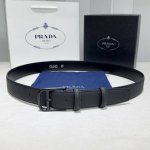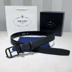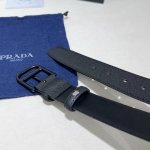 Prada, Saffiano calfskin belt, stylish and sophisticated! Versatile and elegant, 3.5cm wide. Available on the official Ddd website. Made of imported calfskin, fashionable and simple style, suitable for both business and casual occasions! Features a black buckle.