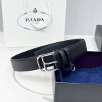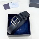 Prada, stylish and sophisticated! Versatile and elegant, 3.5cm wide. Same as the official website, made of imported calfskin leather, fashionable and simple, suitable for both business and casual occasions! Glossy silver hardware.