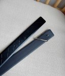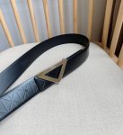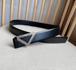 Prada: This latest Prada belt is crafted from exquisite glossy embossed leather, presenting a simple yet sophisticated elegance. The modern, minimalist metal buckle is adorned with an engraved logo, instantly showcasing the brand's style. 3.5cm wide.
