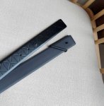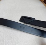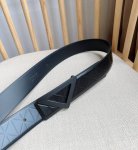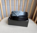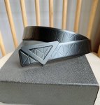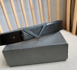 Prada's latest belt from the boutique. This belt is crafted from exquisite glossy embossed leather, presenting a simple yet sophisticated elegance. The modern, minimalist metal buckle is adorned with an engraved logo, instantly showcasing the brand's style. Width: 3.5mm.