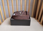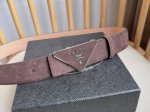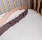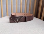 Prada's latest boutique style: This soft suede leather belt features a simple yet sophisticated design. The triangular logo and metal buckle add a finishing touch to this modern accessory. Its unique character and contemporary feel showcase exquisite texture. Width: 3.5cm.