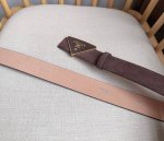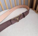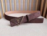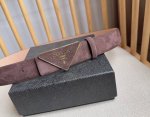 Prada's latest boutique style: This soft suede leather belt features a simple yet sophisticated design. The triangular logo and metal buckle add a finishing touch to this modern accessory. Its unique character and contemporary feel showcase exquisite texture. Width: 3.5cm.