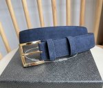 Prada's latest suede leather belt features a simple yet sophisticated style. The prominent enamel triangular metal logo at the end is a signature element of the brand. Unisex, 3.5mm wide.