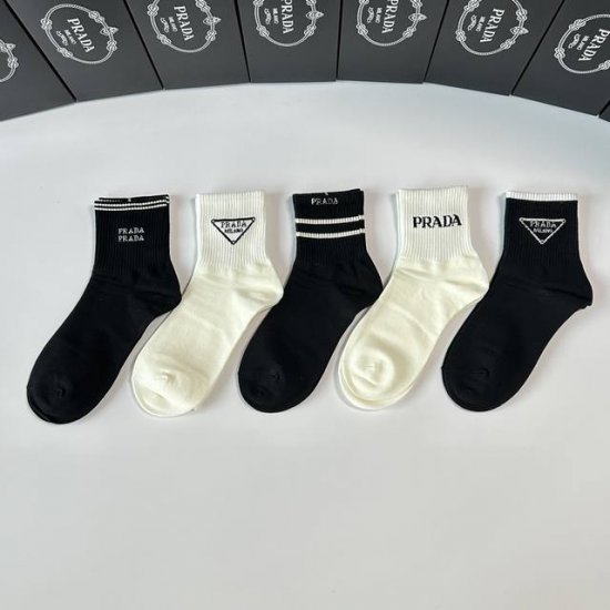 Prada's new mid-length slouch socks! Five pairs per box, same style as in department stores, a must-have for trendsetters, super easy to match.