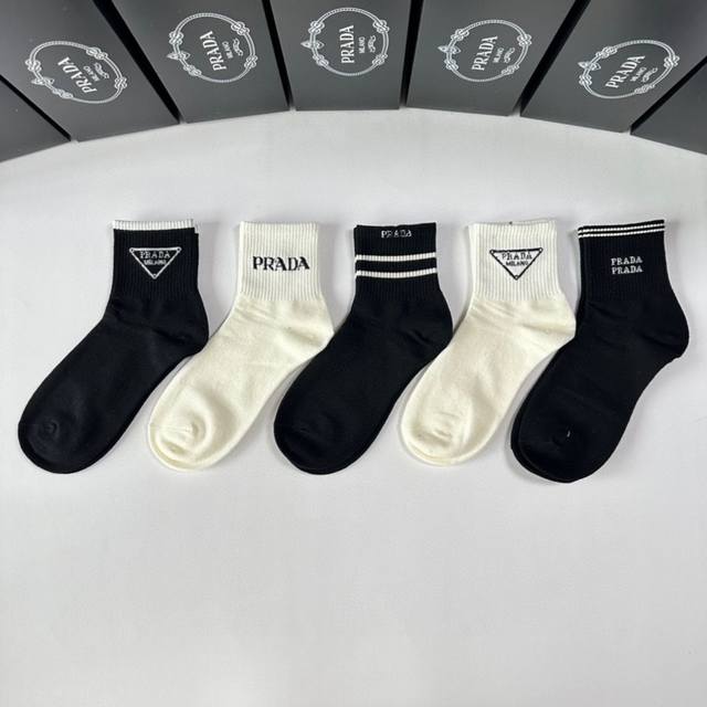 Special packaging from the official store! Prada's new mid-length slouch socks! Five pairs per box, same style as in official stores, a must-have for trendsetters, super easy to match!