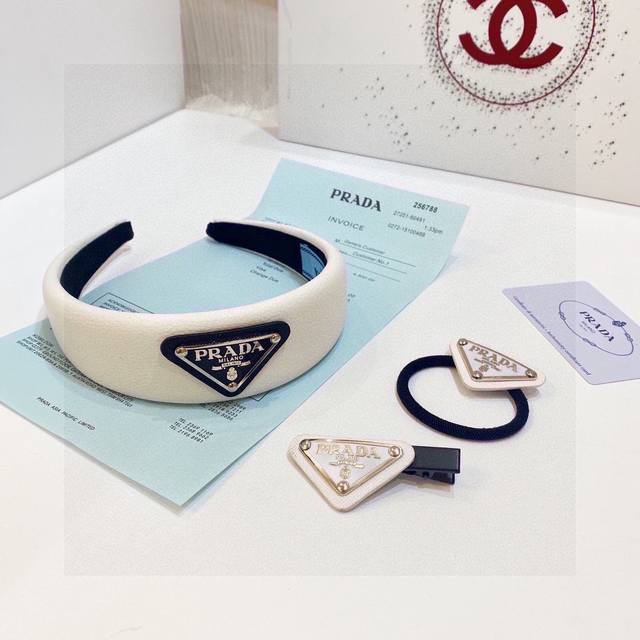 Special three-piece set with counter packaging Prada headband, hairband, hairpin
