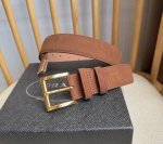 Prada's latest suede leather belt features a simple yet sophisticated style. The prominent enamel triangular metal logo at the end is a signature element of the brand. Unisex, 3.5mm wide.