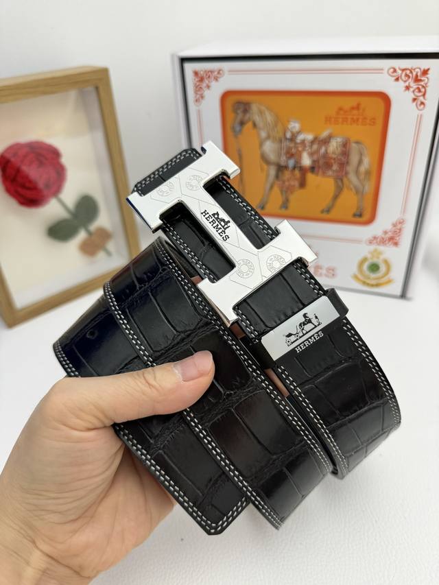 Hermes men's 3.2cm stainless steel welding point buckle with the latest bottom