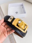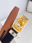 ) Belt: 100% top-grain cowhide, automatic belt body, guaranteed genuine leather. 24K pure steel buckle, never fades, same quality as boutiques, classic top-grain cowhide lychee-patterned tan leather base, gold buckle, steel head buckle, can be freely cut, ideal for gifting or personal use (