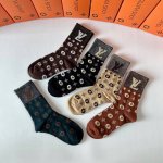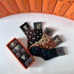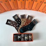 Specially packaged Louis Vuitton new gold-threaded mid-length slouch socks! Five pairs per box, same style as in boutiques, a must-have for trendsetters, super easy to match.