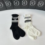 Specially packaged Prada new striped cashmere slouch socks! Two pairs per box, same style as in boutiques, a must-have for trendsetters, super easy to match.