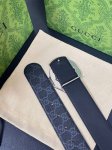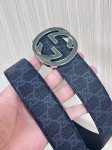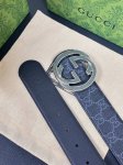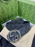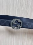 New for the season! This eye-catching men's belt is part of the 2026 Early Spring collection. The belt buckle features a pin for easy flipping of the interlocking double-G buckle. The ruthenium-toned finish provides a shimmering effect, adding a unique charm to the design . Product Details: One side is made of soft Gg Supreme canvas, the other side is black leather. Ruthenium-toned hardware. Detachable interlocking double-G buckle. Width: 4.0mm.