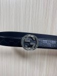 New for the season! This eye-catching men's belt is part of the 2026 Early Spring collection. The belt buckle features a pin for easy flipping of the interlocking double-G buckle. The ruthenium-toned finish provides a shimmering effect, adding a unique charm to the design. Product Details: One side is made of soft Gg Supreme canvas, the other side is black leather. Ruthenium-toned hardware. Detachable interlocking double-G buckle. Width: 4.0mm. Embossed buckle.