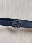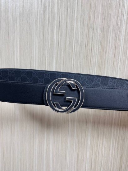 New for the season! This eye-catching men's belt is part of the 2026 Early Spring collection. The belt buckle features a pin for easy flipping of the interlocking double-G buckle. The ruthenium-toned finish provides a shimmering effect, adding a unique charm to the design. Product Details: One side is made of soft Gg Supreme canvas, the other side is black leather. Ruthenium-toned hardware. Detachable interlocking double-G buckle. Width: 4.0mm.