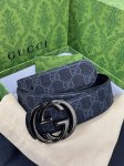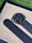 New for the season, this eye-catching men's belt is part of the 2026 Early Spring collection. The belt buckle features a pin for easy flipping of the interlocking double-G buckle. The ruthenium-toned finish provides a shimmering effect, adding a unique charm to the overall design. Product Details: One side is made of soft Gg Supreme canvas, the other side is black leather. Ruthenium-toned hardware. Detachable interlocking double-G buckle. Width: 4.0mm.