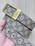 The brand offers a variety of double-sided rectangular buckle belts for men, with the brand's signature pattern on one side and neutral leather on the other. This belt is made of Gg Supreme and smooth leather, and the Gucci engraved details on the rectangular buckle make the design more ingenious.