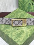 The brand offers a variety of double-sided rectangular buckle belts for men, with the brand's signature pattern on one side and neutral leather on the other. This belt is made of Gg Supreme and smooth leather, and the Gucci engraved details on the rectangular buckle make the design more ingenious.