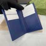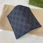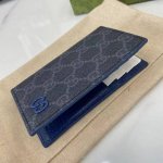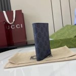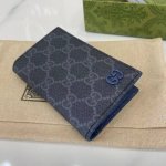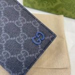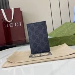 The new premium collection features slim and compact small leather goods, freshly renovated with a variety of brilliant colors. The contrasting two-tone design highlights the Gg logo embellished on the body of the bag. This long card holder is crafted in black Gg Supreme canvas with a blue leather interior and eight card slots.